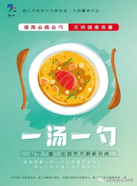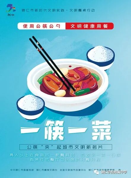 倡仪使用公筷公勺倡仪书 市民朋友们: 为了防范和减少交叉感染及食源性疾病传播,大力推进“五城联创”工作,围绕“使用公筷 文明用餐 健康生活”主题,倡导健康、节俭、文明的用餐方式,促进市民健康,提升社会文明程度。我们倡议: 一、习惯用公筷公勺,做文明餐桌的践行者。在家庭聚餐、酒店餐馆、农村文化礼堂(农村家宴中心)等集体合食的场所要做到“一菜一公筷,一汤一公勺”,使公筷公勺成为餐桌上的“常客”,保障食品安全健康,引导文明用餐风尚。重视公筷公勺的消毒,用餐结束后将公筷公勺单独收集,单独清洗,彻底消毒杀菌,阻断病菌传播。 二、规范用公筷公勺,做文明餐桌的引领者。积极响应“公筷行动”,全市星级饭店、大型餐饮服务提供者以及市各单位、企业食堂合餐场所应率先推广;倡导实行分餐制,杜绝唾液、飞沫“口口相传”,从源头上阻断病毒细菌在餐桌上的传播。 三、带头用公筷公勺,做文明餐桌的宣传者。积极实践光盘行动:餐厅不多点、食堂不多打、厨房不多做。养成生活中珍惜粮食、厉行节约反对浪费的习惯;在外按需点菜,在食堂按需打饭,在家按需做饭。珍惜粮食,节约粮食仍是需要遵守的传统美德哦! 四、倡导用公筷公勺,做文明餐桌的推动者。在外就餐时提倡带上自己的筷子和勺子,把餐馆的餐具作为公筷公勺;使用餐馆的餐具,主动要求在每个菜盘、盆、锅等盛食物的容器配备公筷公勺;使用公筷公勺时不挑不拣、各取所食,不用自己的筷子相互夹菜。 餐桌举止非小事,一筷一勺见文明!让我们积极行动起来,从我做起,从现在做起,养成安全、健康、文明、卫生就餐新风尚!