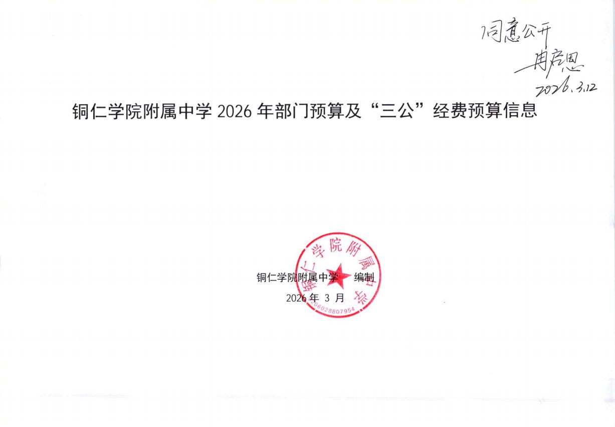 铜仁学院附属中学2026年部门预算及“三公”经费预算信息