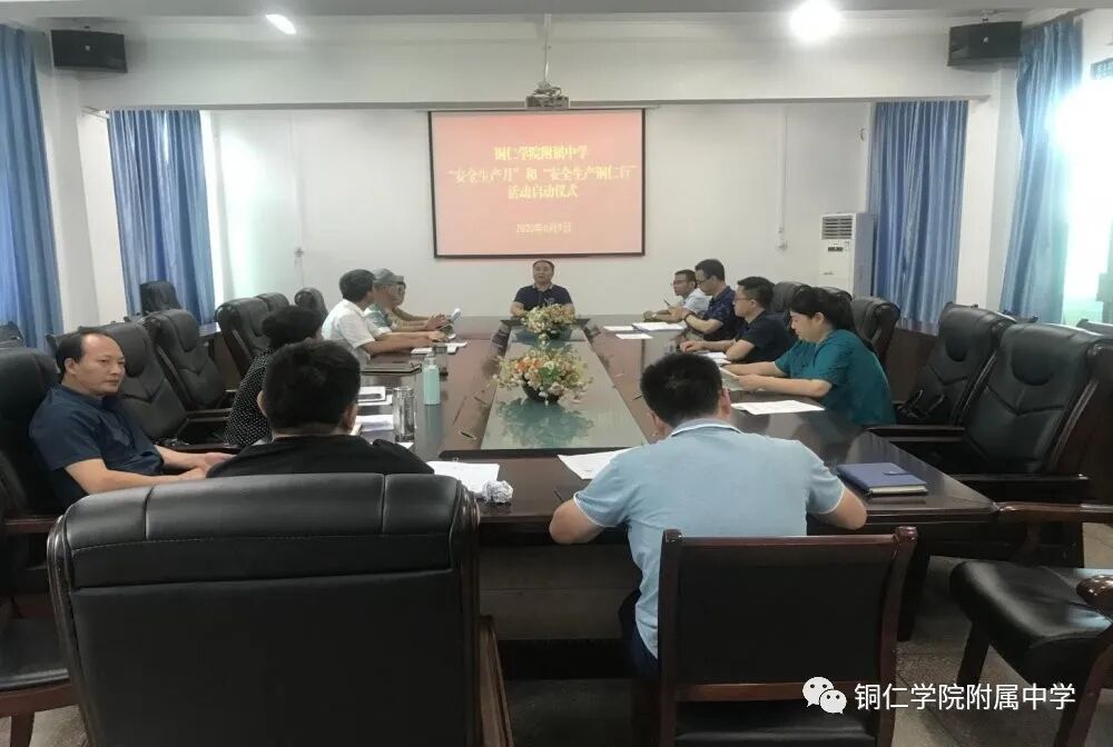 今年6月是第19个全国“安全生产月”。为认真贯彻落实习近平总书记“从根本上消除事故隐患,有效遏制重特大 事故发生”的重要指示精神,推动全市学校安全生产专项整 治行动安全风险隐患排查整治工作顺利开展,根据《省安委会办公室省应急厅关于开展2020年全省“安全生产月”和“安 全生产贵州行”活动的通知》(黔安办〔 2020〕15号)和《市安委会办公室市应急局关于开展2020年全市学校“安全生产月”和“安全生产铜仁行”活动的通知》(铜安办〔 2020〕9 号)要求,我校于6月9日在第三会议室组织召开安全生产月启动仪式。 启动仪式由我校书记校长张江林主持,参会的有冉启恩副书记,孟凡梅副校长,曾建平副校长,罗锦江副校长,代芸副校长及所有中层干部。 会议“消除事故隐患, 筑牢安全防线”为主题。以习近平新时代中国特色社会主义思想为指导,深入学习宣传贯彻党的十九大和十九届二中、三中、四中全会精神;深入学习贯彻习近平总书记关于学校安全生产重要论述,贯 彻落实党中央、国务院、省委、省政府和市委、市政府关于 安全生产重大决策部署,贯彻落实《安全生产法》《贵州省安全生产条例》《生产安全事故应急条例》。 随后并根据实际情况对我校安全工作进行了如下安排:1、全体教职工要记住安全生产月的时间及安全生产月的主题。2、各班认真开展安全主题活动宣传教育。3、通过微信群向家长宣传安全教育。4、组织全体教职工参加安全知识竞赛活动并积极动员家长参与。 会后,组织我校初三年级毕业班部分同学在学校第一教学楼前做安全生产月签名活动。通过本次活动,增强了毕业班学生的安全责任意识并为此次活动营造了良好的氛围。(隋辰 供稿/图)
