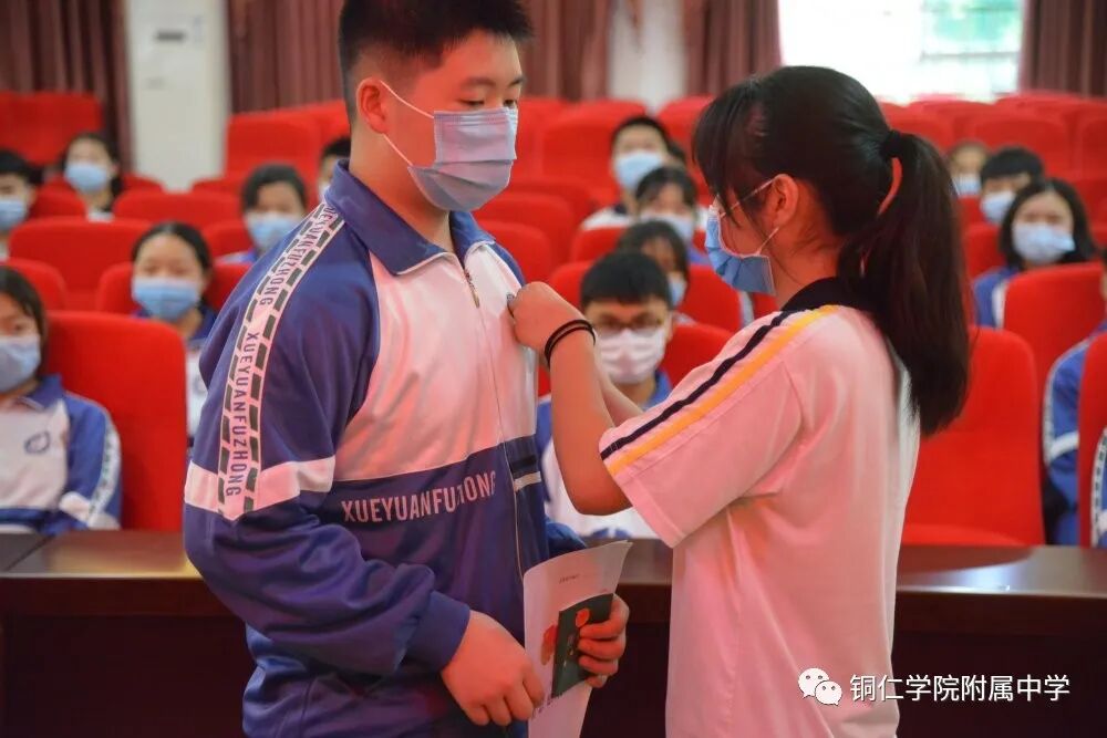 2020年5月7日,值此纪念中国共青团成立98周年和“五四”学生爱国运动101周年之际,铜仁学院附中2020年“五四”新团员入团宣誓仪式在第一会议室隆重举行。 出席此次活动的有铜仁学院附中孟凡梅副校长、铜仁学院附中团委书记陈蕊、团委办公室杨雳老师。“五四”期间新发展的团员及部分老团员参加了这次活动。活动由团委委员田海勇主持。 团委书记陈蕊讲话 为新团员佩戴团徽 首先由团委书记陈蕊宣读了《共青团铜仁学院附属中学委员会关于批准任博等同学加入中国共产主义青年团的决定》通知并为新团员代表颁发了团员证、团徽和入团志愿书,接着在老团员代表任冰婷同学的带领下全体新团员在庄严地团旗面前进行了入团宣誓仪式,听取了入团介绍人冉新敏、老团员代表任冰婷、新团员代表冉朋林的发言。 德育副校长孟凡梅讲话 活动最后,铜仁学院附中孟凡梅副校长作了重要讲话。她对新团员表示衷心的祝贺并希望同学们能继续保持谦虚谨慎、戒骄戒躁的作风,更加努力学习,争取早日成才,真正成为社会主义现代化事业的合格建设者和可靠接班人。 活动在充满激情的团歌声中落下帷幕。 (田海勇 供稿隋辰 供图)