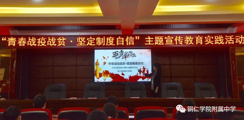 为深入学习宣传贯彻习近平总书记关于疫情防控工作的系列重要讲话和指示批示精神,激励和引领广大青少年弘扬爱国主义精神,矢志投身新时代夺取中国特色社会主义伟大胜利的新征程,汇聚起助力高质量打赢脱贫攻坚战、决胜全面建成小康社会的强大青春力量,我校团委于2020年5月7日在第一会议室举行了“青春战疫战贫•坚定制度自信”主题宣传教育实践活动。 参加此次活动的有2020年“五四”期间新发展的团员及部分老团员。活动由团委书记陈蕊主持。 在此次活动中,陈蕊书记结合当前形势,为同学们讲述了在疫情防控、攻坚脱贫中涌现出来的90后、00后青年感人事迹,以此说明青年一代在国家发展中的重要作用。 组织委员田海勇鼓励同学们一定要好好珍惜今天的大好时光,珍惜年轻的岁月,努力地去学习,努力地去创造,青年时代是人一生最宝贵的阶段,有活力,有创造性,有想法,精力和体力最充沛,但青春短暂,稍纵即逝,要好好把握,不要虚度了好年华! (团员代表冉朋林) (团员代表冉新敏) (团员代表任冰婷) 在本次活动中,铜仁学院附中的团员们深刻领会了五四精神和担当精神,并进行了激烈的发言。在发言中,团员们表示在今后的学习生活中,不虚度光阴,不荒废青春,将爱国热情转化为前进的动力,为自己的目标而奋斗,磨砺自身本领,努力成为祖国的栋梁。 最后,陈蕊书记强调,希望同学们仍然要对疫情时刻保持警惕,并发挥我们作为共青团员的力量,带动身边的亲友,以端正的态度、积极的心态看待疫情,注意个人卫生,多读书多锻炼,不信谣不传谣,拒绝野味,健康生活,继续继承并发扬五四精神,热爱祖国,敢于拼搏,努力成长为能够担当时代大任的新人。(田海勇 供稿隋辰 供图)